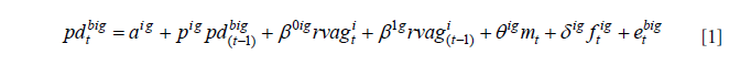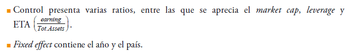 - Un vector de otras M variables macro. Este vector no varía por banco, por unidad ni por tamaño. No se consideran retardos de este vector.