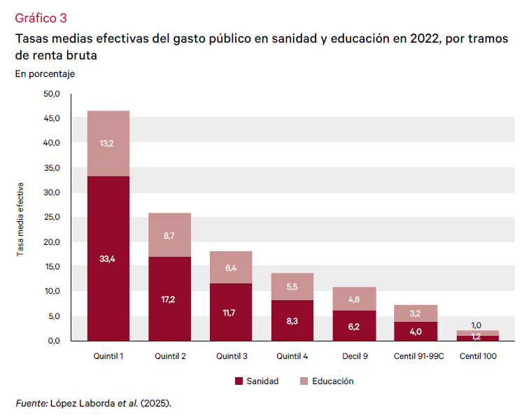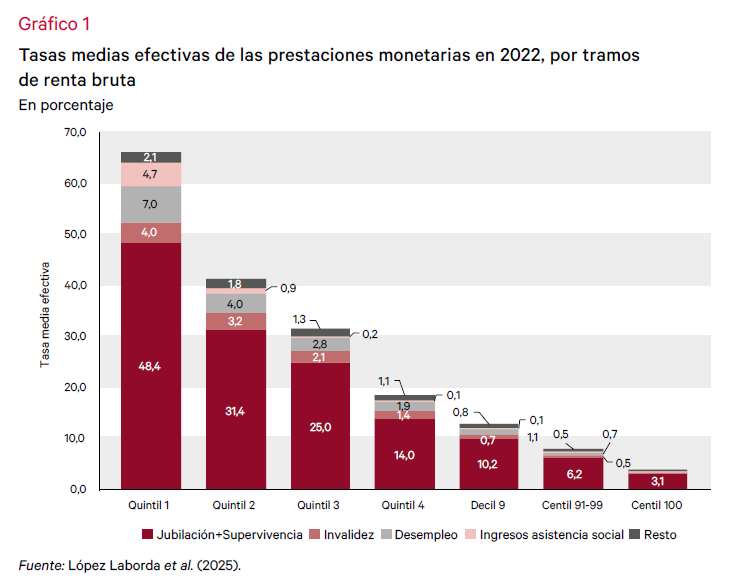 El saldo neto de la intervención pública en España deja de ser progresivo en la parte superior de la escala de rentas brutas.