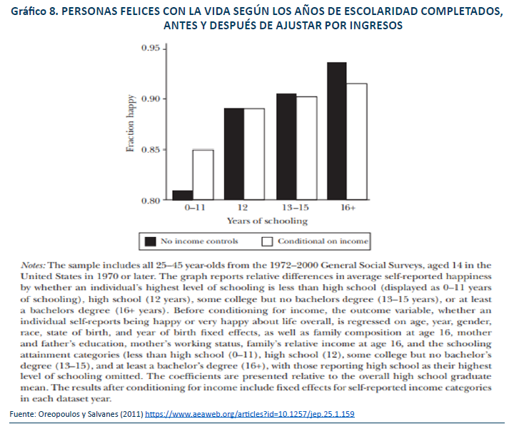 - Retornos individuales y sociales: Un año adicional de escolarización se asocia con incrementos salariales del 9 %-15 %, menor desempleo, mejor salud y más satisfacción vital (Oreopoulos, 2006; Psacharopoulos, 2024).