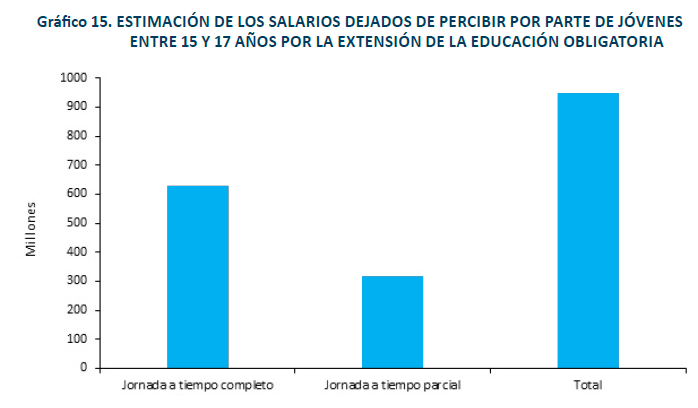 B. Pérdidas de salarios de la población entre de 15 y 17 años afectada