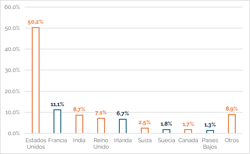 Gráfico 1. País de origen de las empresas (matriz) proveedoras de tecnología para la banca europea (2023)