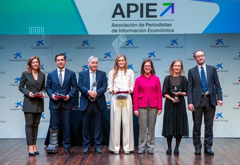 Madrid, 26/11/2025 | Funcas ha recibido el premio Tintero 2025 que concede la Asociación de Periodistas de Información Económica (APIE) a aquellas instituciones y personalidades que destacan por su política de comunicación, por una labor informativa con mensajes claros y frecuentes a los medios de comunicación. En una ceremonia celebrada en la sede de CaixaForum en Madrid, el director general de Funcas, Carlos Ocaña, ha recogido el galardón principal que, por primera vez en los 40 años de historia de los premios, recae en una institución dedicada a la investigación y la divulgación económica.