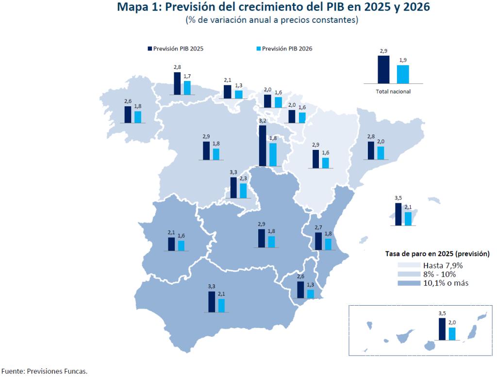 Previsiones económicas para las comunidades autónomas 2025 - 2026